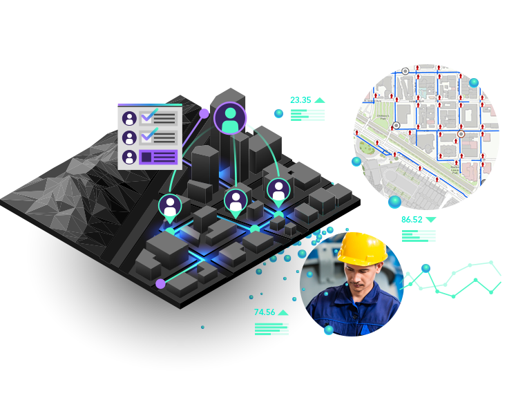 Facilitez la collaboration entre les opérateurs de terrain et le personnel de bureau. Tirez parti des technologies de localisation pour déterminer où des tâches doivent être réalisées et coordonner et répartir efficacement les ressources. Vos données de référence existantes sont la base sur laquelle repose la planification de vos activités sur le terrain.